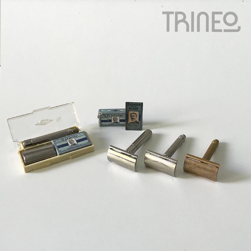 Máquinas de afeitar plata antiguas X 4 + HOJITAS