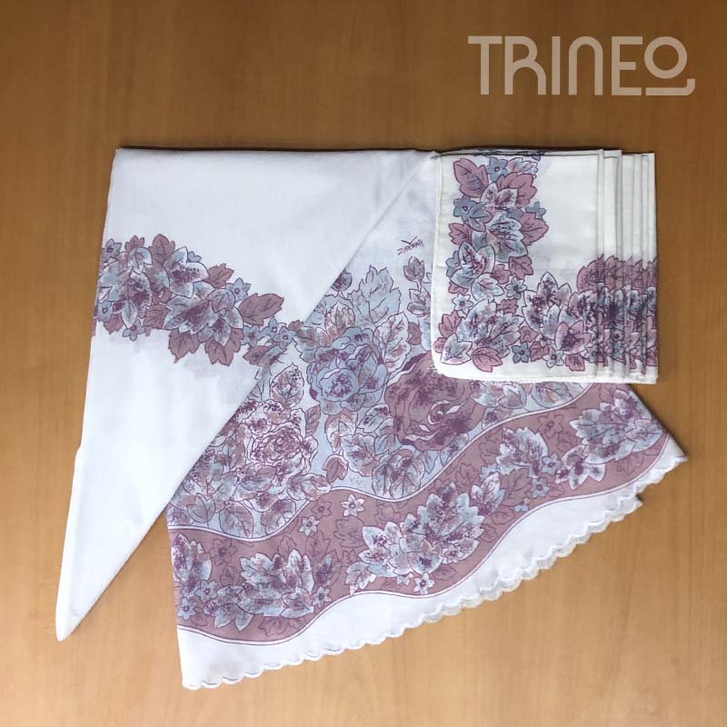 MANTEL REDONDO FLORES (1,60M DIÁMETRO) + 8 SERVILLETAS
